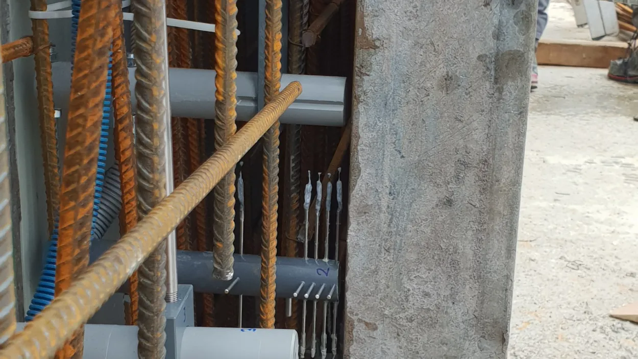 Als Ersatz für den Klinker nutzt Holcim in diesem neuen Produkt eine Mischung aus hochwertigem Kalkstein, gebranntem Schiefer sowie Flugasche. Dazu kommt ein von Forschern der Eidgenössischen Technischen Hochschule (ETH) Zürich entwickelter, rein natürlicher Aktivator sowie sorgfältig abgestimmte Betonzusatzmittel von Sika. Gemeinsam wurden umfangreiche Untersuchungen zu Frisch- und Festbetoneigenschaften sowie Dauerhaftigkeit und Korrosion durchgeführt. Alle Eignungstests im Labor hat der Beton bestanden. Nun geht es darum, die Ergebnisse in der Praxis zu bestätigen und noch besser zu verstehen, wie sich der Beton mit dem neuartigen Zement unter realen Bedingungen verhält.